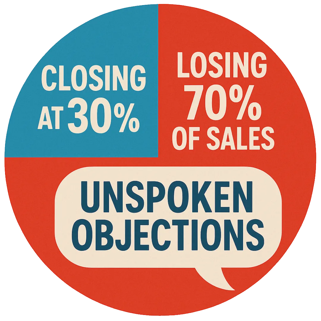 For example: if you're closing at 30%, you're also losing 70% of potential sales. And a big chunk of that is lost from the "Unspoken Objections" your prospects kept silent from you.